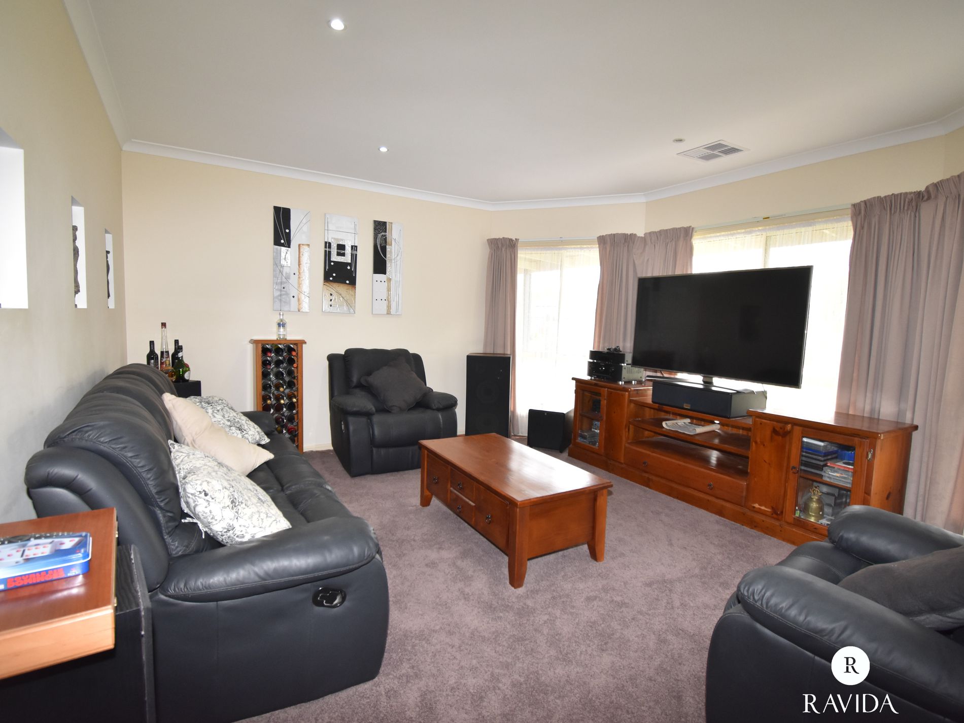 Featuring 4 bedrooms, with a full ensuite to the main bedroom and a family bathroom featuring a spa bath. The living areas are large, providing the home with ample space for relaxation and entertainment. The kitchen is equipped with state-of-the-art appliances and overlooking the backyard.