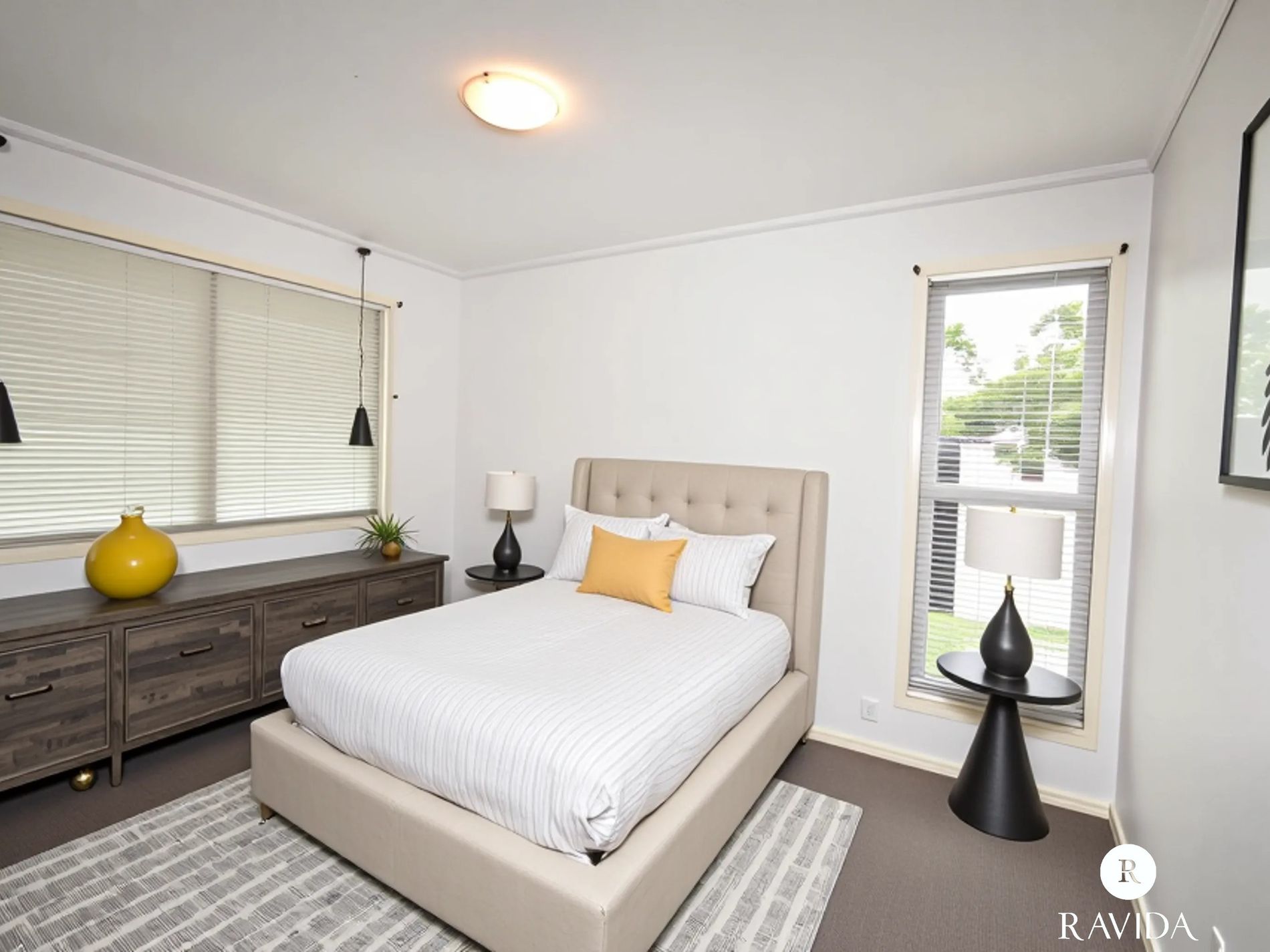 The spacious kitchen features electric cooking, a dishwasher and an island bench, providing ample storage.