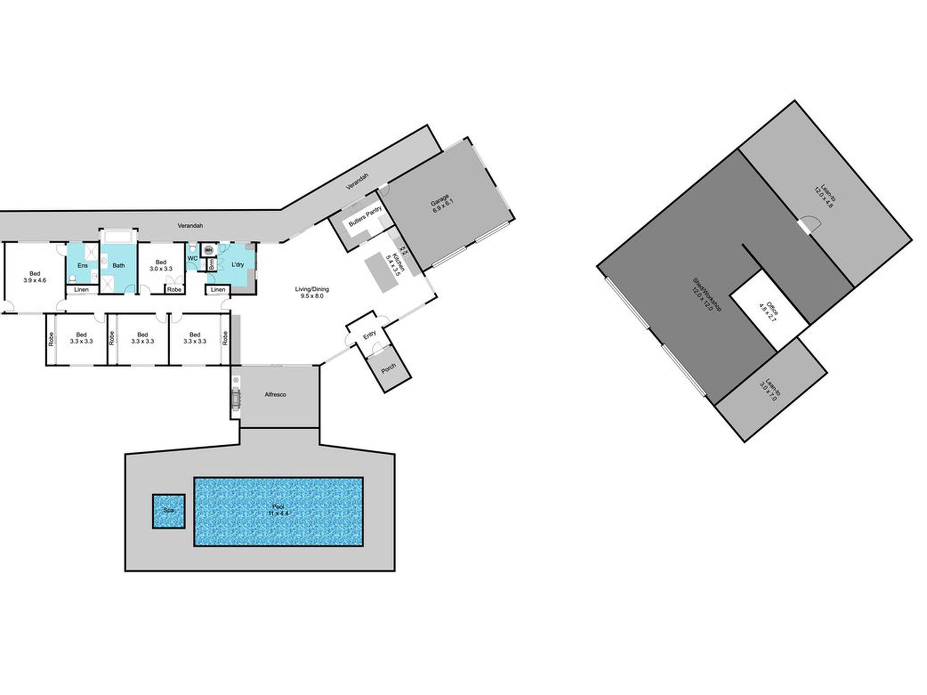 • Double garage plus substantial shed with dual roller doors with dedicated workshop space and office with split system.