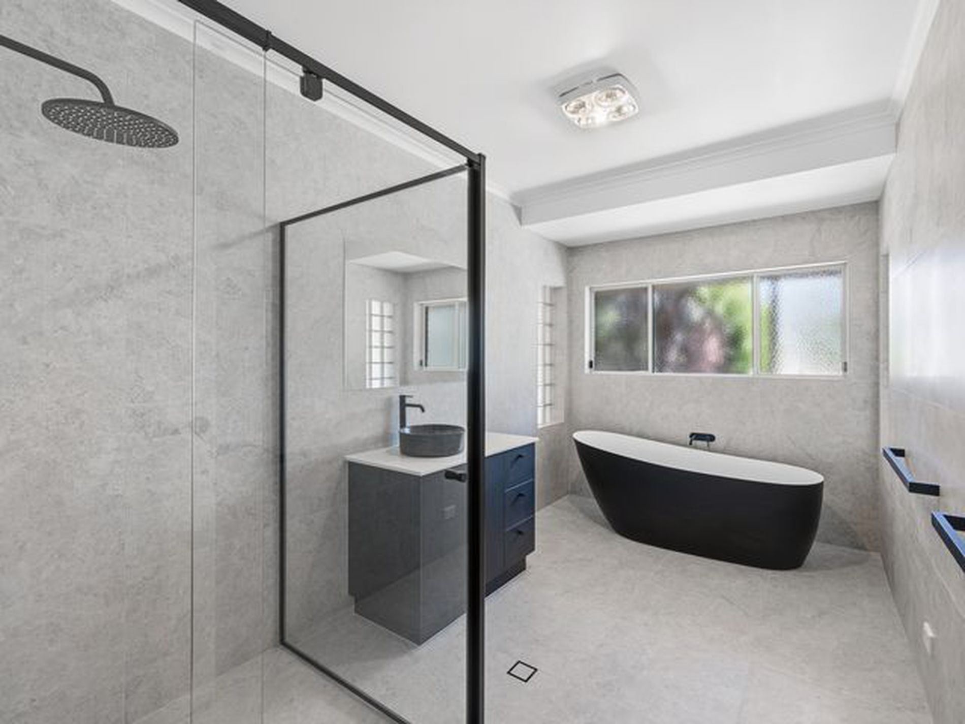 The master suite is complete with walk-in robe and full ensuite. Four additional bedrooms are generous in size and all include built-in robes, ensuring excellent accommodation for the growing family or guests. The fully renovated main bathroom showcases 600x600mm floor-to-ceiling tiles, matte black fixtures, a large shower, freestanding bath and vanity, with a toilet and vanity located separately for added convenience.