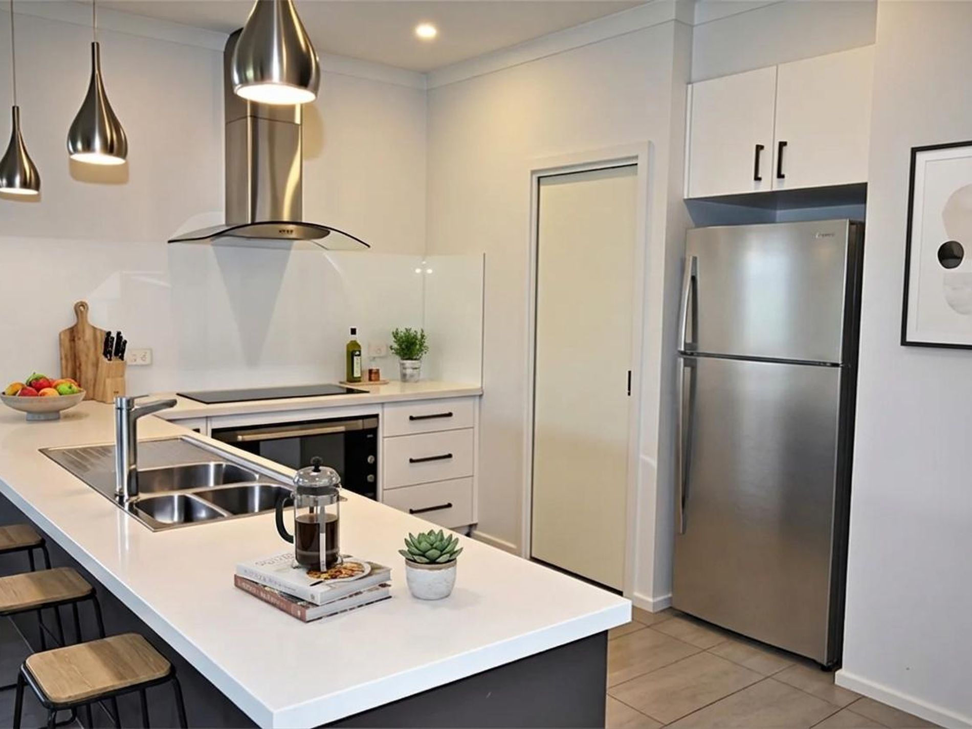 Large walk-in pantry, Caesar Stone bench tops, stainless steel dishwasher and a wide 900mm fan-forced electric oven in the kitchen