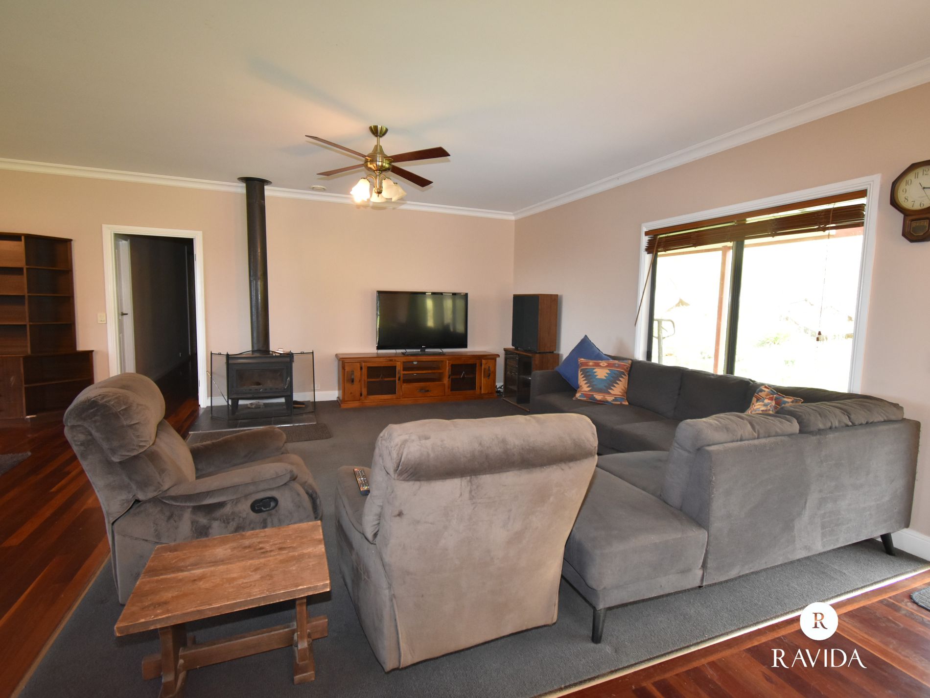 There are ceiling fans throughout the home, and a slow-combustion wood heater with a fan-forced transfer duct. The home has had an overabundance of PowerPoints installed for convenience.